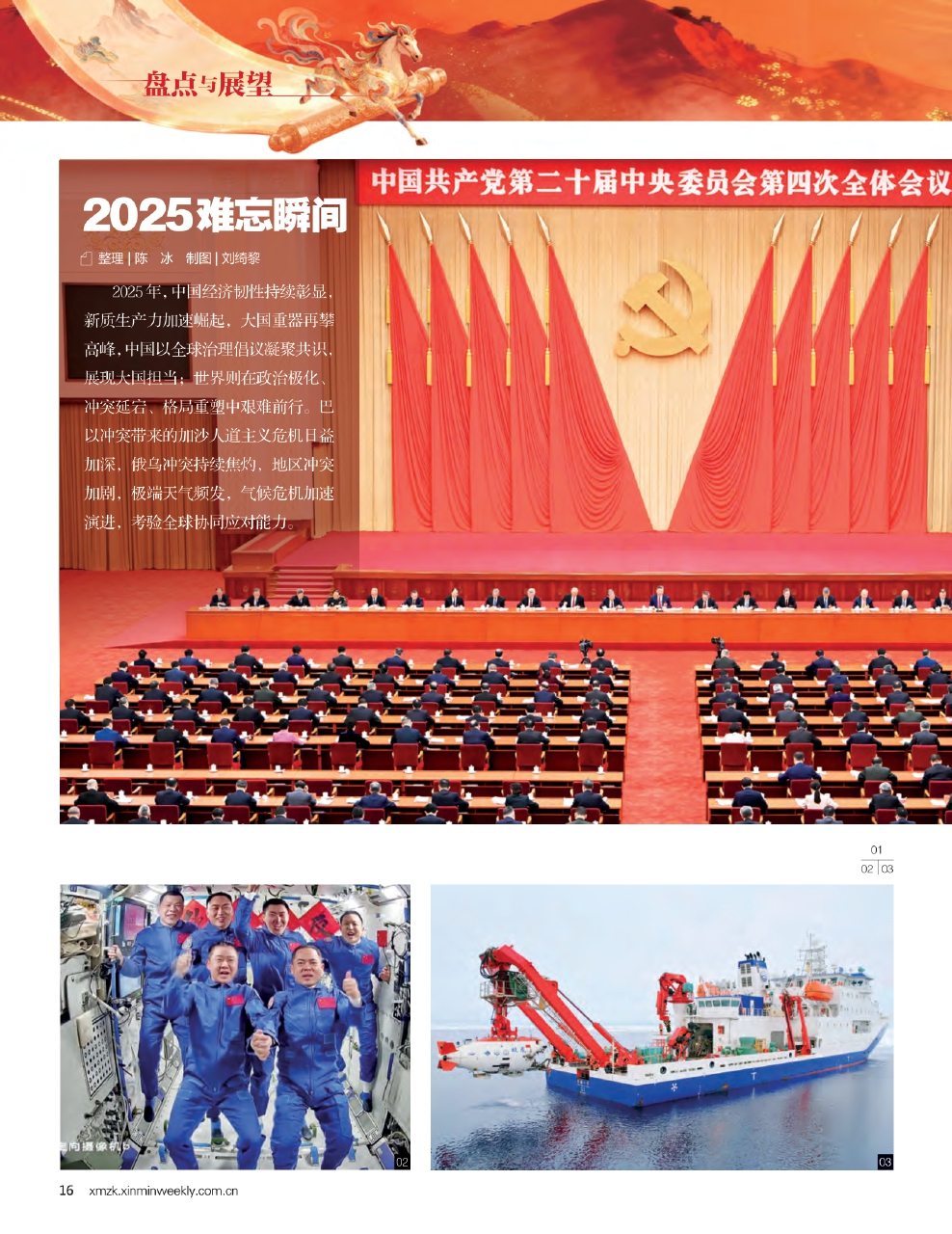 2025年,中国经济韧性持续彰显,新质生产力加速崛起,大国重器再攀高峰,中国以全球治理倡议凝聚共识,展现大国担当;世界则在政治极化、冲突延宕、格局重塑中艰难前行。巴以冲突带来的加沙人道主义危机日益加深,俄乌冲突持续焦灼,地区冲突加剧,极端天气频发,气候危机加速演进,考验全球协同应对能力。