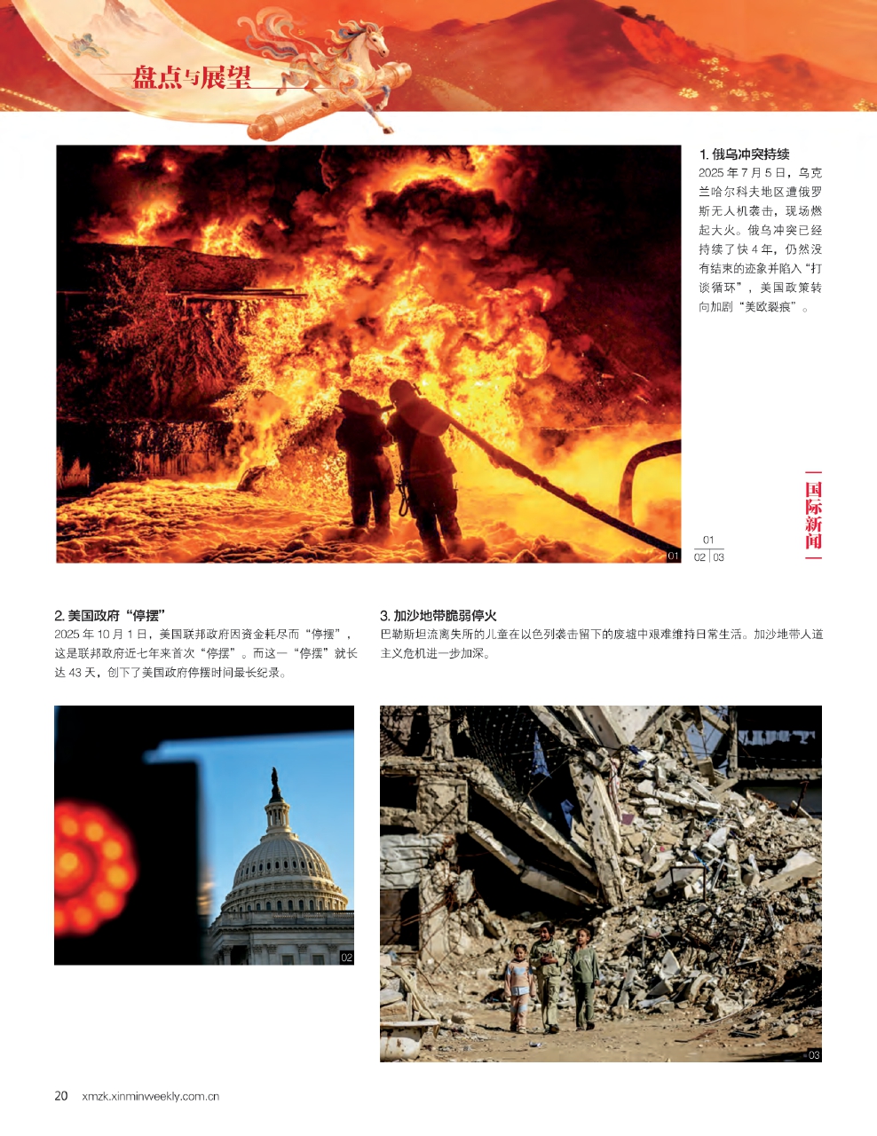 2025年,中国经济韧性持续彰显,新质生产力加速崛起,大国重器再攀高峰,中国以全球治理倡议凝聚共识,展现大国担当;世界则在政治极化、冲突延宕、格局重塑中艰难前行。巴以冲突带来的加沙人道主义危机日益加深,俄乌冲突持续焦灼,地区冲突加剧,极端天气频发,气候危机加速演进,考验全球协同应对能力。