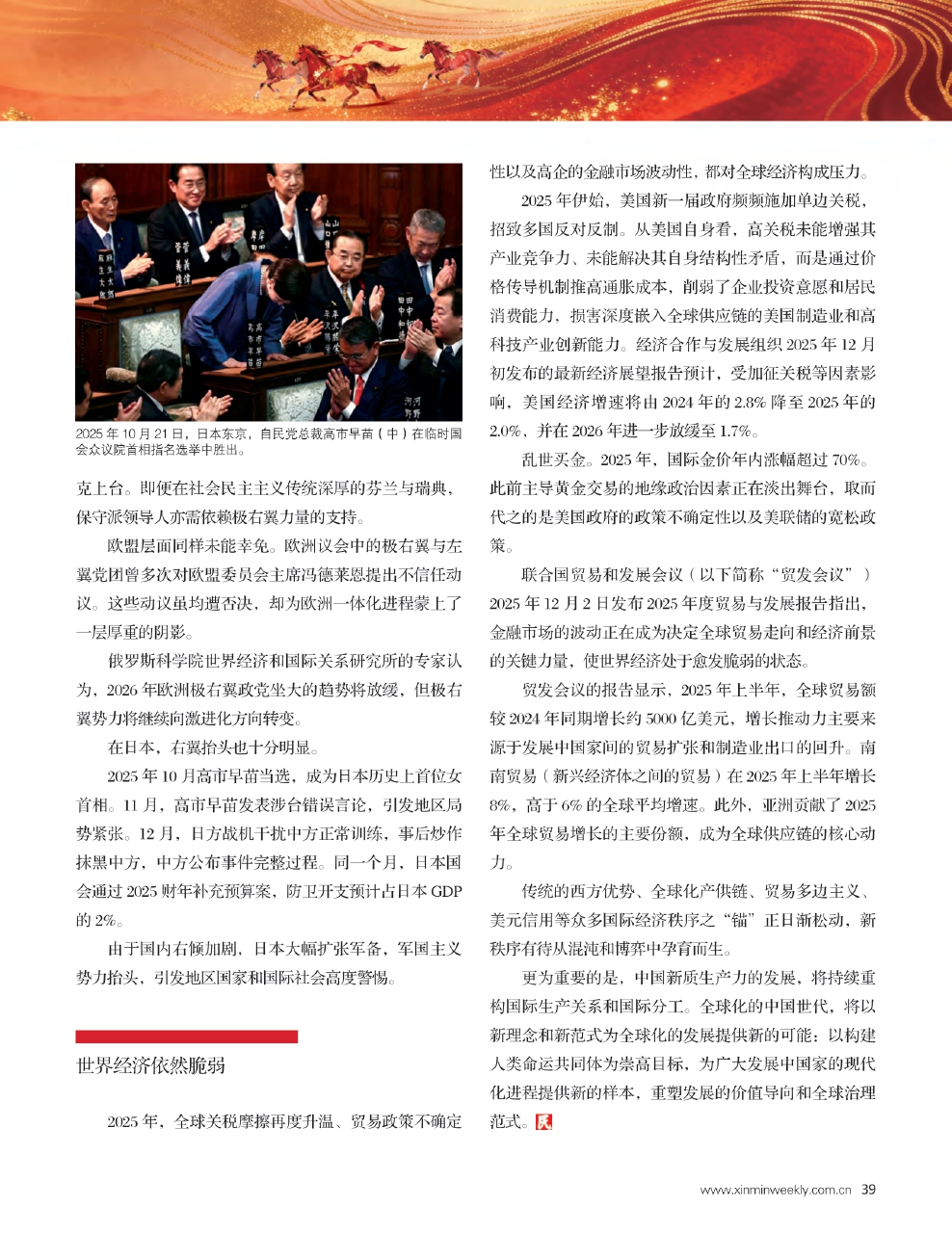 2025年伊始,美国新一届政府频频施加单边关税,招致多国反对反制。从美国自身看,高关税未能增强其产业竞争力、未能解决其自身结构性矛盾,而是通过价格传导机制推高通胀成本,削弱了企业投资意愿和居民消费能力,损害深度嵌入全球供应链的美国制造业和高科技产业创新能力。经济合作与发展组织2025年12月初发布的最新经济展望报告预计,受加征关税等因素影响,美国经济增速将由2024年的2.8%降至2025年的2.0%,并在2026年进一步放缓至1.7%。