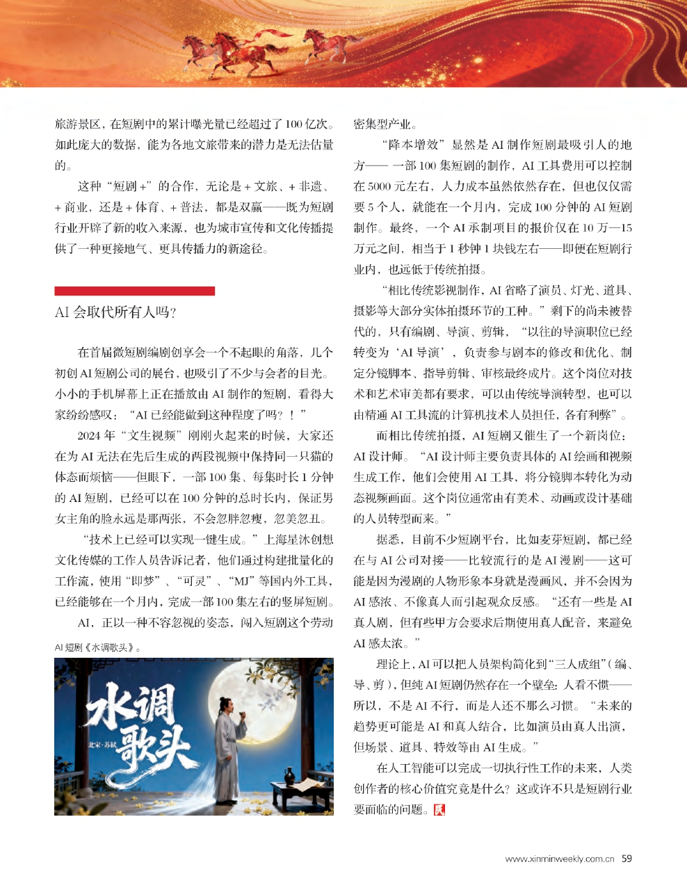 “相比传统影视制作,AI省略了演员、灯光、道具、摄影等大部分实体拍摄环节的工种。”剩下的尚未被替代的,只有编剧、导演、剪辑,“以往的导演职位已经转变为‘AI导演’,负责参与剧本的修改和优化、制定分镜脚本、指导剪辑、审核最终成片。这个岗位对技术和艺术审美都有要求,可以由传统导演转型,也可以由精通AI工具流的计算机技术人员担任,各有利弊”。