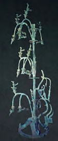 Ⅰ号大型铜神树由底座、树和龙三部分组成,采用分段铸造法铸造,使用了套铸、铆铸、嵌铸等工艺,通高3.96米,树干顶部及龙身后段略有残缺。在我国迄今为止所见的全部青铜文物中,这株神树也称得上是形体最大的一件。