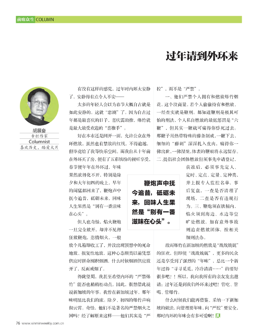 什么时候我们能再借鉴、采纳一下新加坡的做法,向管理要年味,向“严控”要安全,那时内环的年味会有多可爱啊!