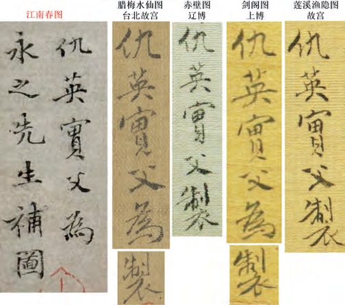 在仇英真迹中,找不到与《江南春》图笔法和风格特色一致的作品,这也就是一些鉴定家们能轻易将之直接鉴定为“伪,一般”的原因。