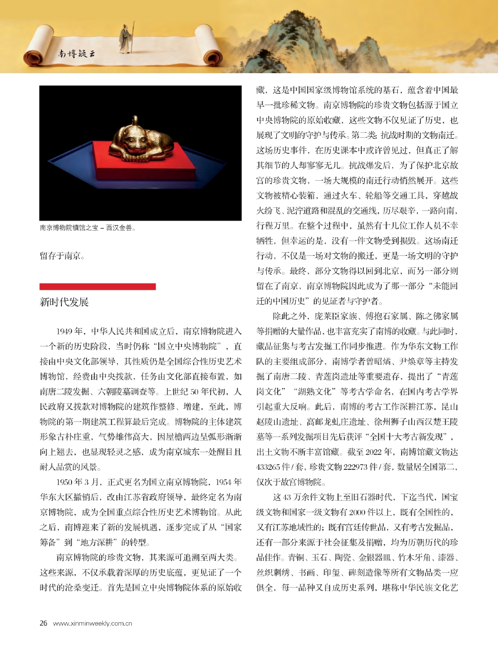 1950年3月,正式更名为国立南京博物院,1954年华东大区撤销后,改由江苏省政府领导,最终定名为南京博物院,成为全国重点综合性历史艺术博物馆。从此之后,南博迎来了新的发展机遇,逐步完成了从“国家筹备”到“地方深耕”的转型。