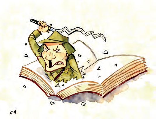 4.雨露“军”沾 《学习时报》刊发文章《警惕日本军国主义在文体领域的渗透》指出:一段时期以来,日本文体界接连出现夹带军国主义元素的行为。在体育领域,足球运动员三笘薰与二战战犯相关卡片合影、乒乓球运动员张本智和等人参拜供奉侵略战争战犯的东乡神社;在文艺领域,偶像团体SnowMan在专辑预告中植入刻有战犯名字和侵略战争年份的武士刀,娱乐作品中屡次出现“旭日旗”“731部队”等符号。这些行为并非孤例,而是日本极右翼势力有组织地利用文体活动影响公众认知、美化侵略历史的具体表现。