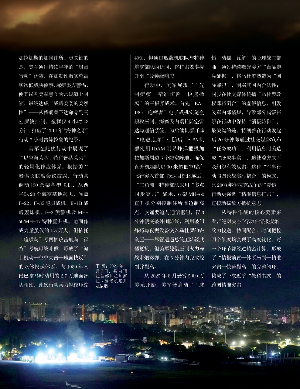 2026年1月3日凌晨,加勒比海海域的夜色尚未褪去,美军代号“绝对决心”的特种作战行动在委内瑞拉首都加拉加斯骤然展开。从电磁压制到精准突击,从目标控制到快速撤离,花费数小时成功绑架了委内瑞拉总统马杜罗,整个过程未造成美方人员死亡,再次将现代特种作战“体系支撑、精准高效”的特质展现出来。