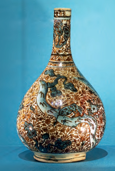 左图:龙纹瓶,伊朗,约1650—1700年,釉陶,釉上拉斯特彩,高26厘米,腹径15.5厘米。 © 2025 Mus é e du Louvre,dist.GrandPalaisRmn/RaphaëlChipault