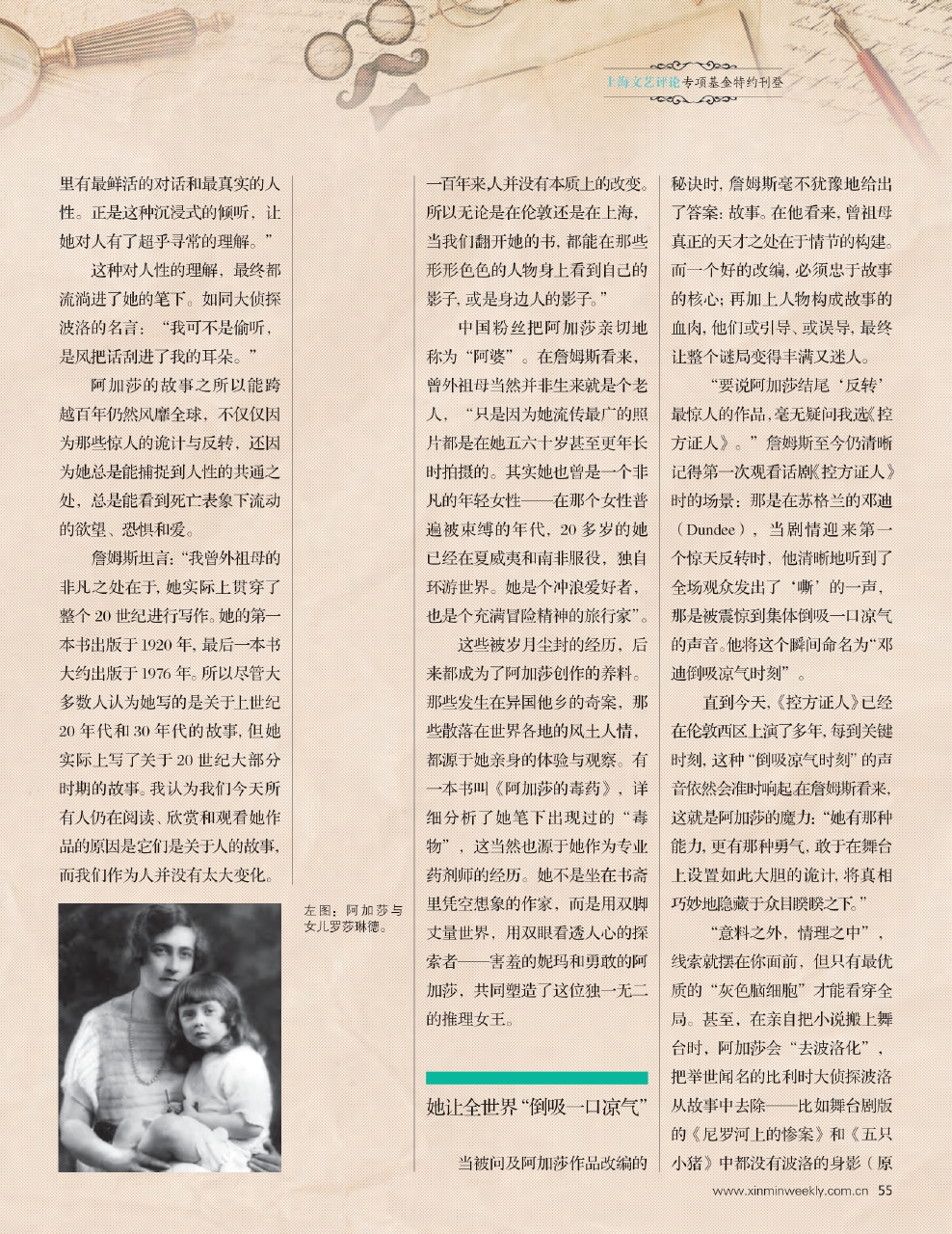詹姆斯说,自己心目中有两个阿加莎,一个是举世闻名的推理小说女王,另一个是家族成员——一个非常害羞的人。