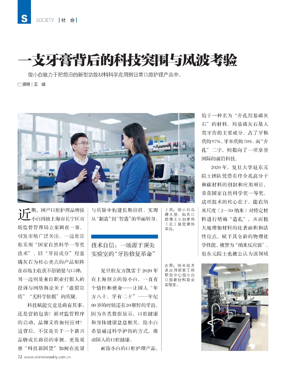“简单说,就是把前沿的新型功效材料科学应用到日常口腔护理产品中。”俊小白品牌大使、知名口腔博主小如老师告诉《新民周刊》,俊小白以介孔羟基磷灰石等功效口腔新材料开发的产品,涵盖“牙釉质修护”“牙周牙龈护理”“固齿美白”“口干口臭专健”“儿童青少年防蛀修护系列”等多个细分场景的产品矩阵,将科研成果从实验室加速落地至消费终端,让科技真正服务于消费者的口腔健康。