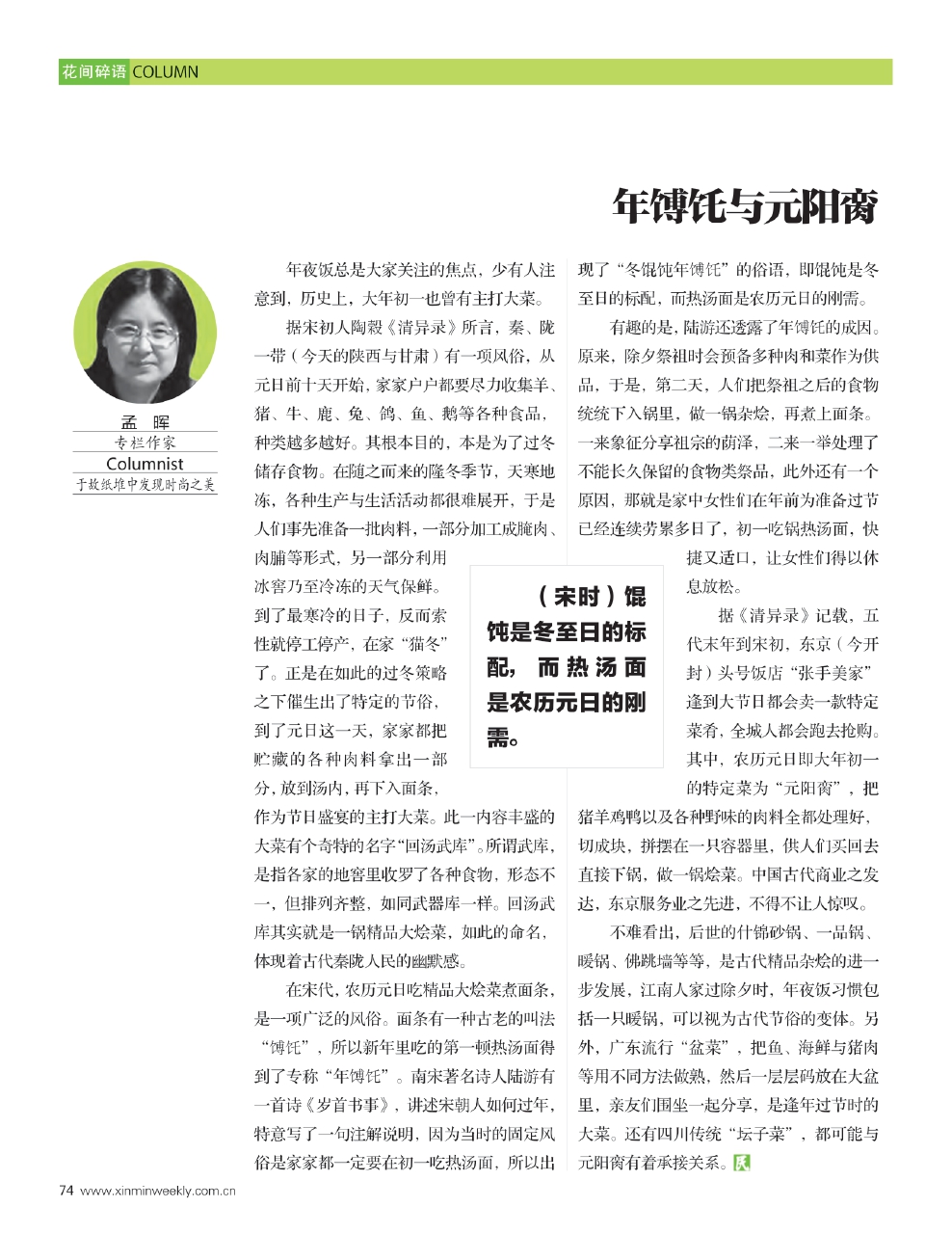 (宋时)馄饨是冬至日的标配,而热汤面是农历元日的刚需。