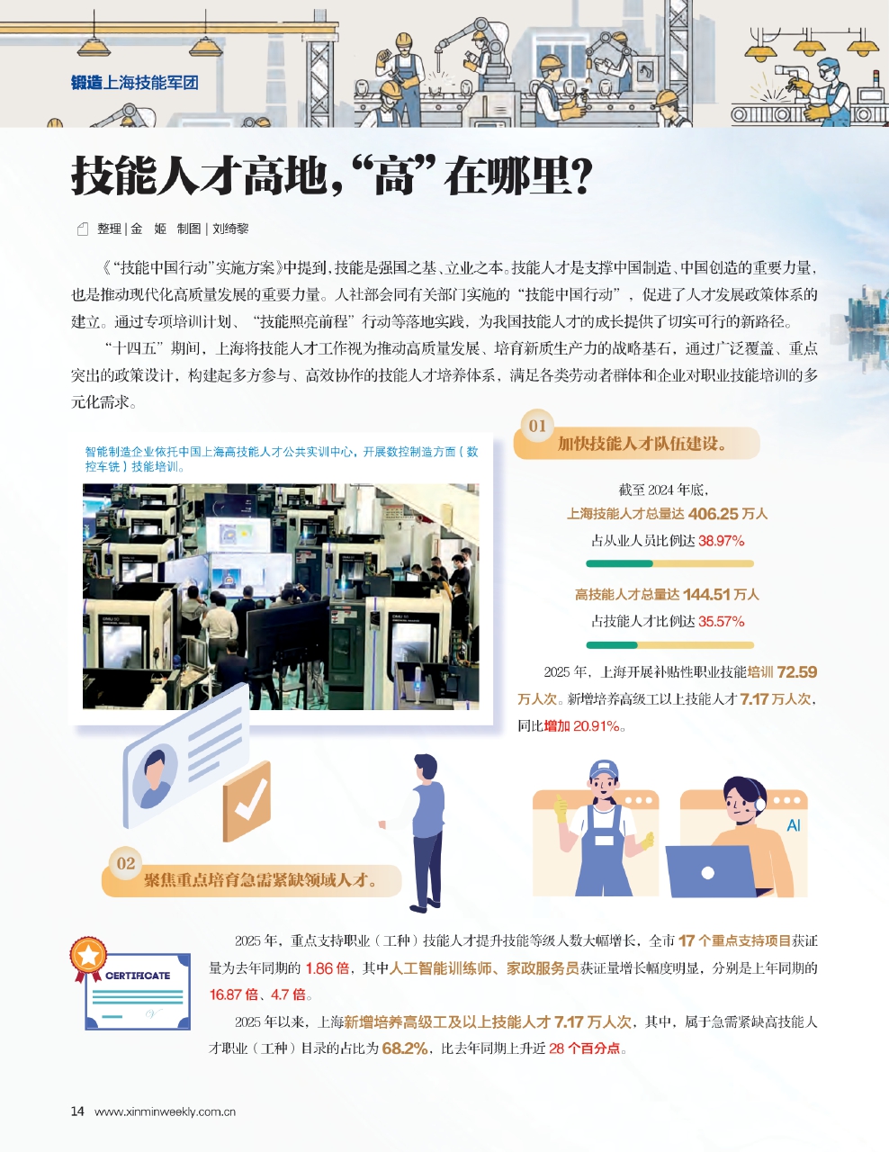 “十四五”期间,上海将技能人才工作视为推动高质量发展、培育新质生产力的战略基石,通过广泛覆盖、重点突出的政策设计,构建起多方参与、高效协作的技能人才培养体系,满足各类劳动者群体和企业对职业技能培训的多元化需求。