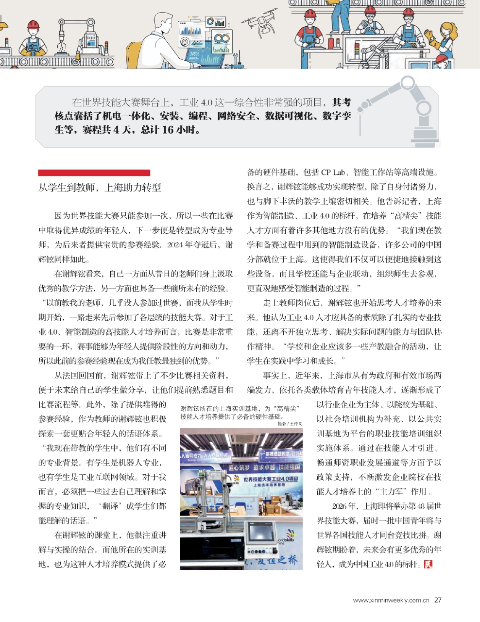 2026年,上海即将举办第48届世界技能大赛,届时一批中国青年将与世界各国技能人才同台竞技比拼。谢辉铉期盼着,未来会有更多优秀的年轻人,成为中国工业4.0的标杆。