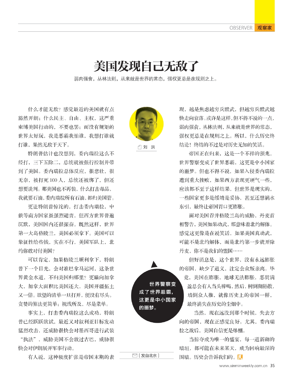 世界警察变成了世界恶霸,这更是中小国家的噩梦。