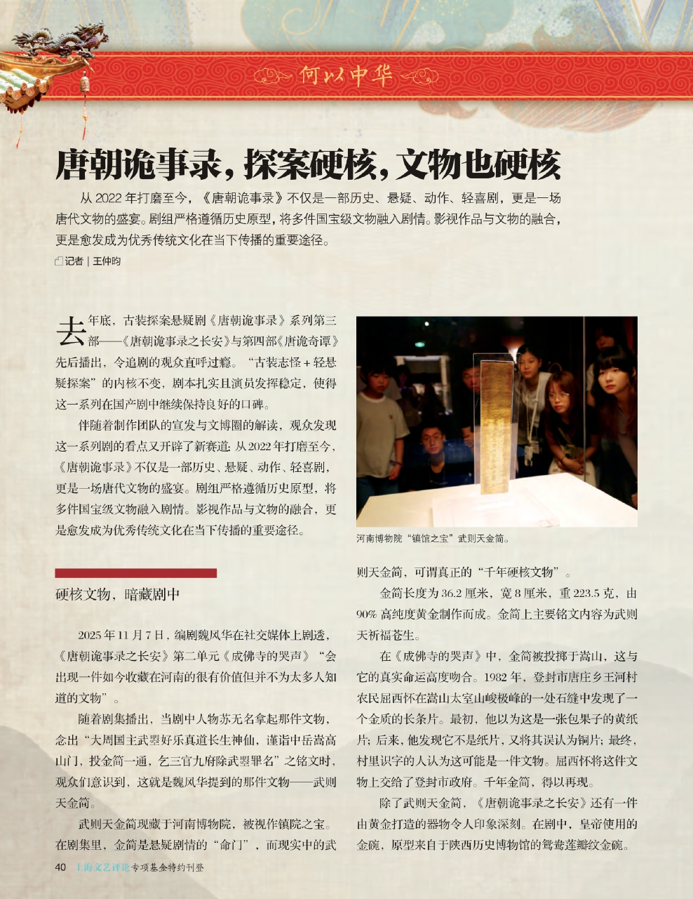 伴随着制作团队的宣发与文博圈的解读,观众发现这一系列剧的看点又开辟了新赛道:从2022年打磨至今,《唐朝诡事录》不仅是一部历史、悬疑、动作、轻喜剧,更是一场唐代文物的盛宴。剧组严格遵循历史原型,将多件国宝级文物融入剧情。影视作品与文物的融合,更是愈发成为优秀传统文化在当下传播的重要途径。