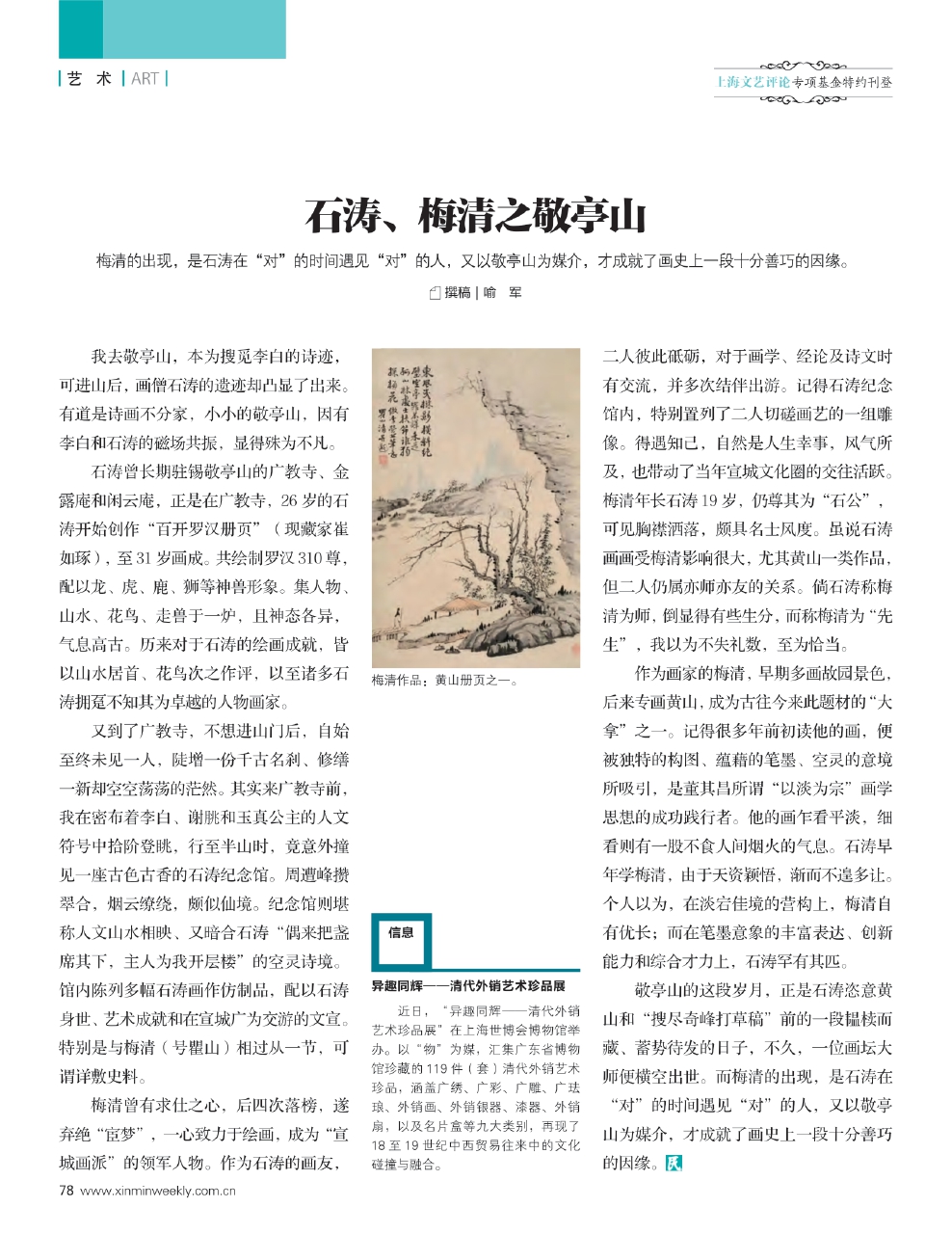 梅清的出现,是石涛在“对”的时间遇见“对”的人,又以敬亭山为媒介,才成就了画史上一段十分善巧的因缘。