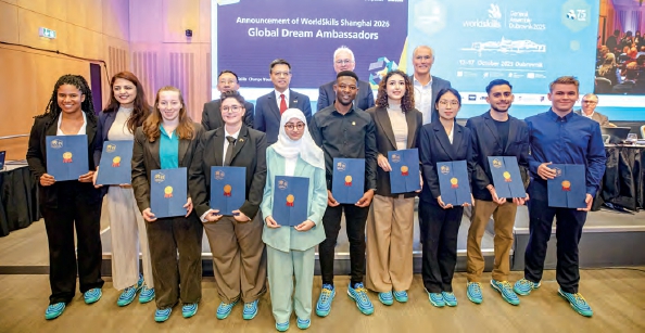 当地时间2025年10月13日,在克罗地亚举行的2025年世界技能组织全体成员大会上,上海2026年第48届世界技能大赛事务执行局聘请11位世界技能大赛冠军联络小组代表担任“上海世赛全球技能梦想大使”。