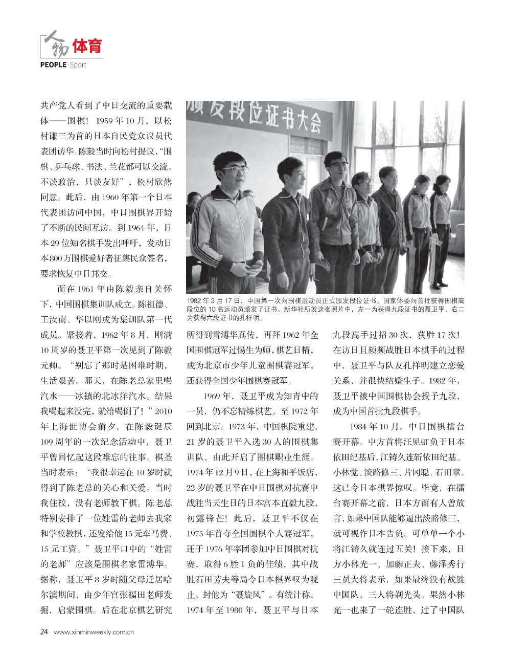 1982年3月17日,中国第一次向围棋运动员正式颁发段位证书。国家体委向首批获得围棋高段位的10名运动员颁发了证书。新华社所发这张照片中,左一为获得九段证书的聂卫平,右二为获得六段证书的孔祥明。