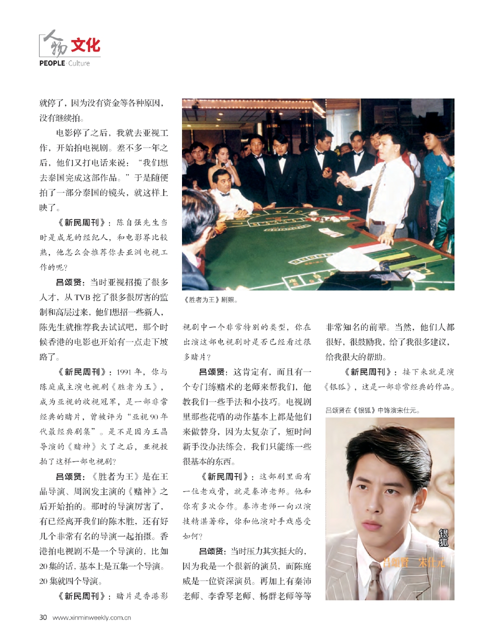 吕颂贤:《胜者为王》是在王晶导演、周润发主演的《赌神》之后开始拍的。那时的导演厉害了,有已经离开我们的陈木胜,还有好几个非常有名的导演一起拍摄。香港拍电视剧不是一个导演的,比如20集的话,基本上是五集一个导演。20集就四个导演。