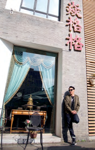 吕颂贤在自己开办的焱格格素菜馆前。