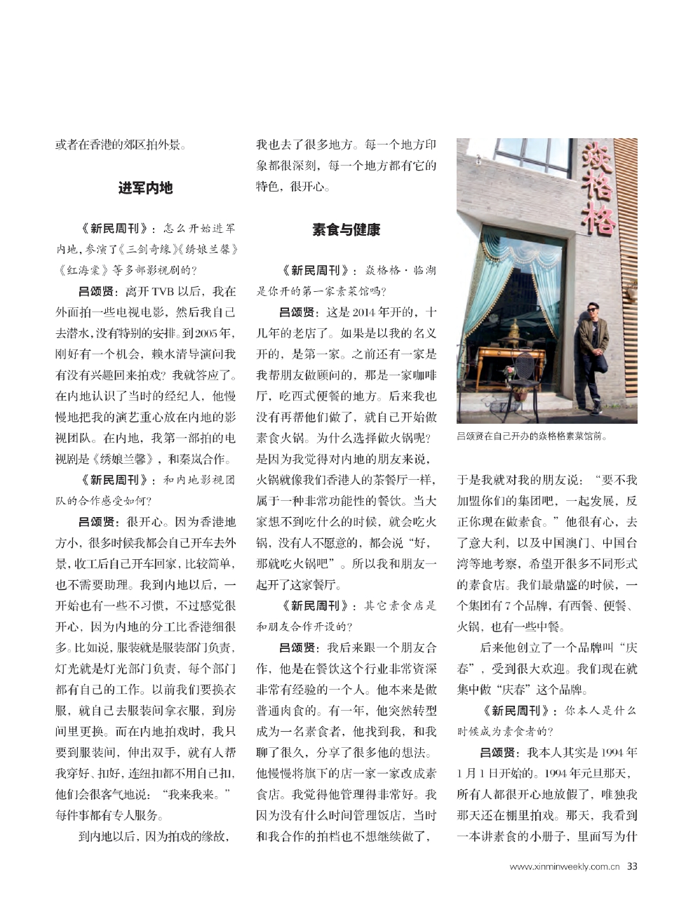 《新民周刊》:焱格格·临湖是你开的第一家素菜馆吗?