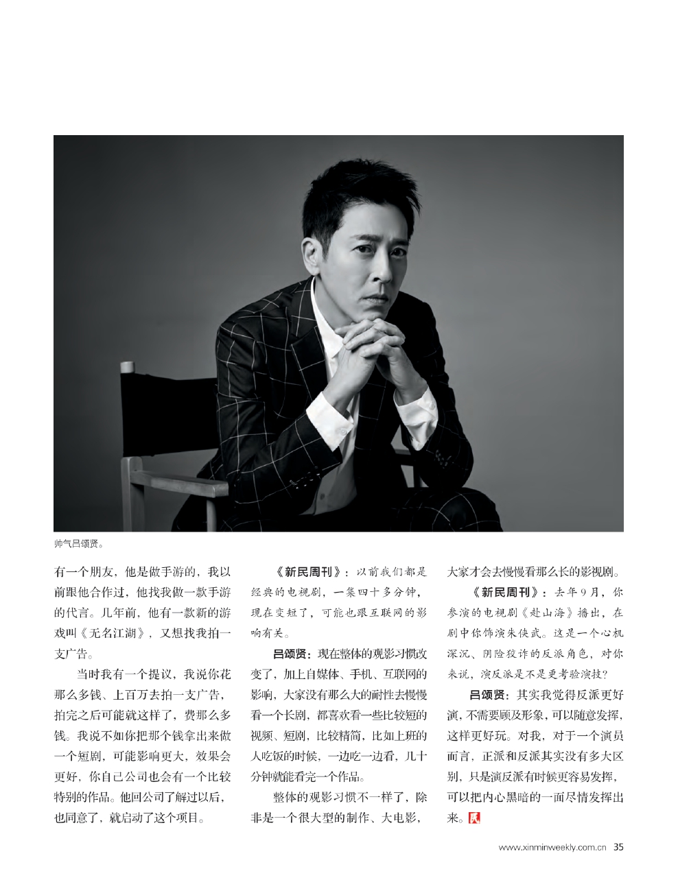 吕颂贤:其实我觉得反派更好演,不需要顾及形象,可以随意发挥,这样更好玩。对我,对于一个演员而言,正派和反派其实没有多大区别,只是演反派有时候更容易发挥,可以把内心黑暗的一面尽情发挥出来。