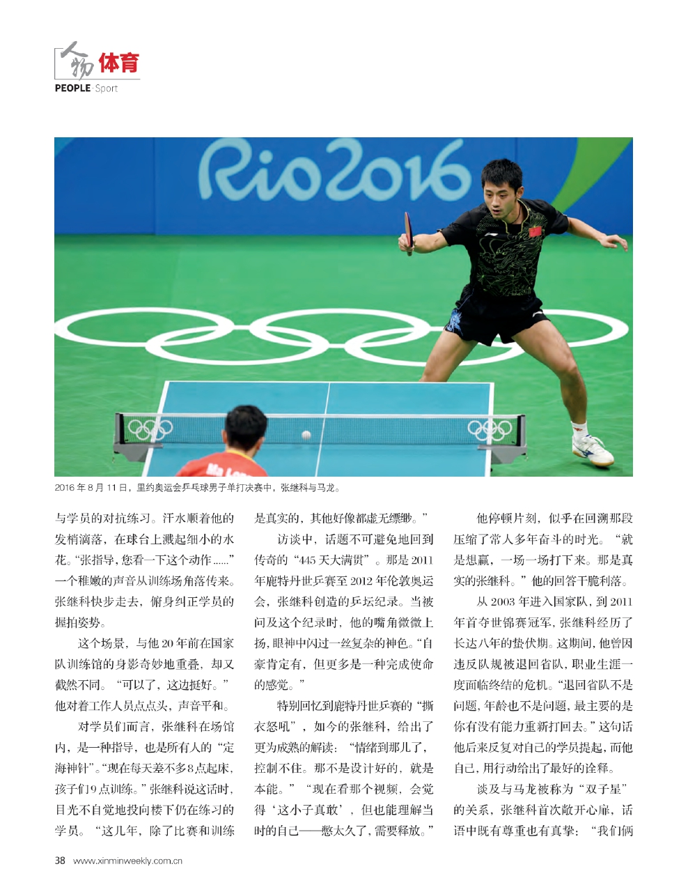 2016年8月11日,里约奥运会乒乓球男子单打决赛中,张继科与马龙。