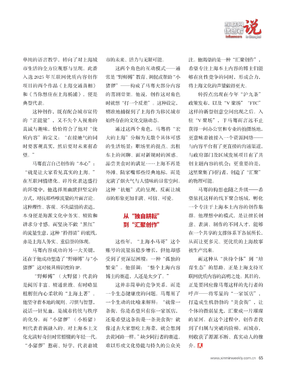 而这种从“扶持个体”到“培育生态”的思路,正是上海支持互联网优质内容的高明之处。其目的,正是要回应像马骞这样的先行者的呼声——将零星的“一家饭店”,打造成生机勃勃的“美食街”,让个体的微弱星光,汇聚成一片璀璨的星河。在这个过程中,创作者找到了归属与突破的阶梯,而城市,则收获了源源不断、真实动人的推介。