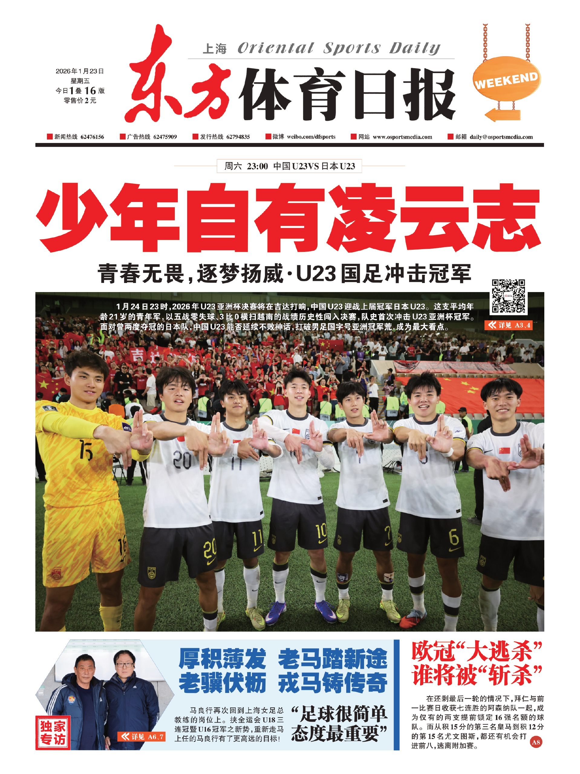 1月24日23时,2026年U23亚洲杯决赛将在吉达打响,中国U23迎战上届冠军日本U23。这支平均年龄21岁的青年军,以五战零失球、3比0横扫越南的战绩历史性闯入决赛,队史首次冲击U23亚洲杯冠军。面对曾两度夺冠的日本队,中国U23能否延续不败神话,打破男足国字号亚洲冠军荒,成为最大看点。 详见 A3、4