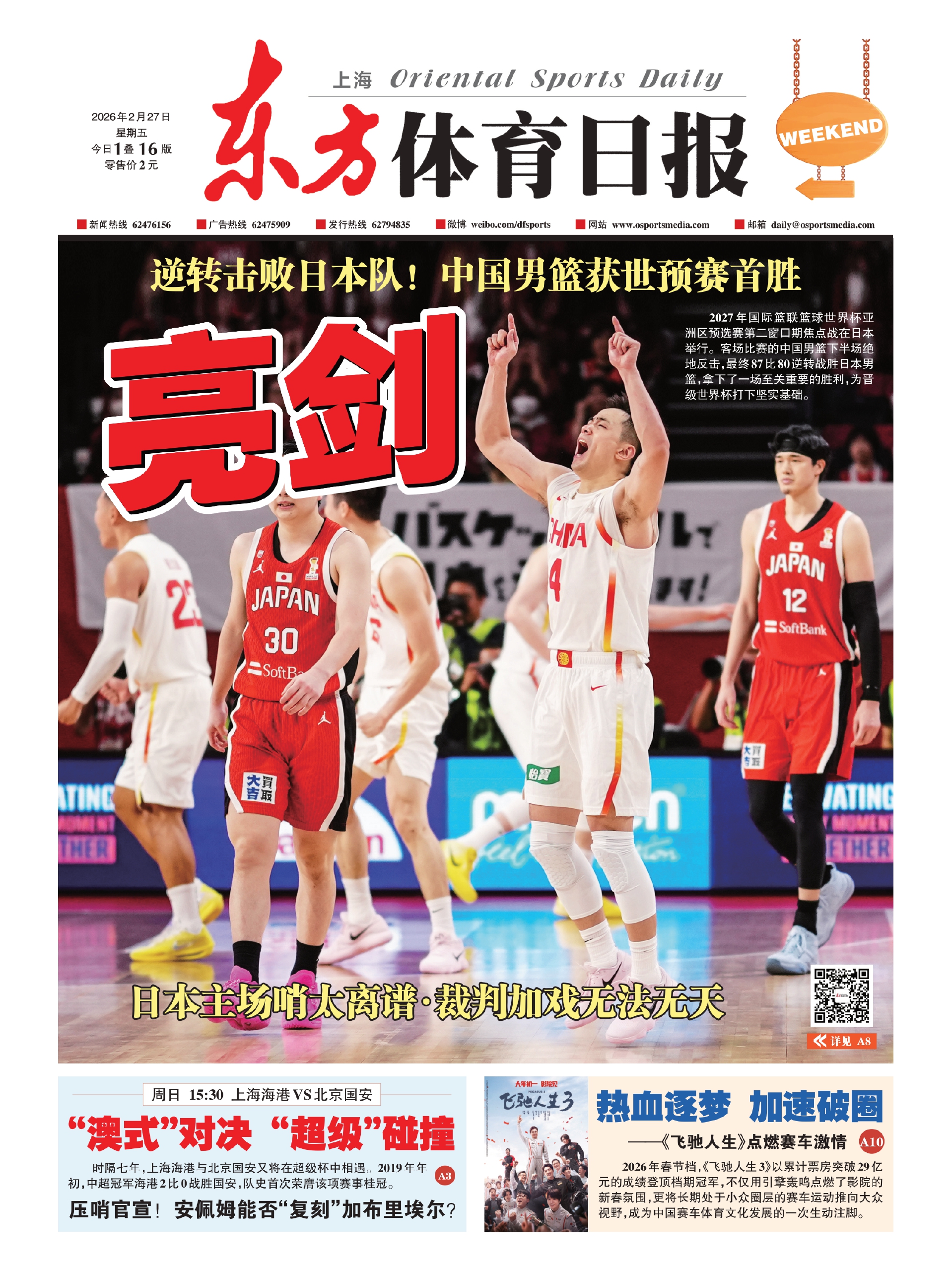 2027年国际篮联篮球世界杯亚洲区预选赛第二窗口期焦点战在日本举行。客场比赛的中国男篮下半场绝地反击,最终87比80逆转战胜日本男篮,拿下了一场至关重要的胜利,为晋级世界杯打下坚实基础。 日本主场哨太离谱·裁判加戏无法无天 详见 A8