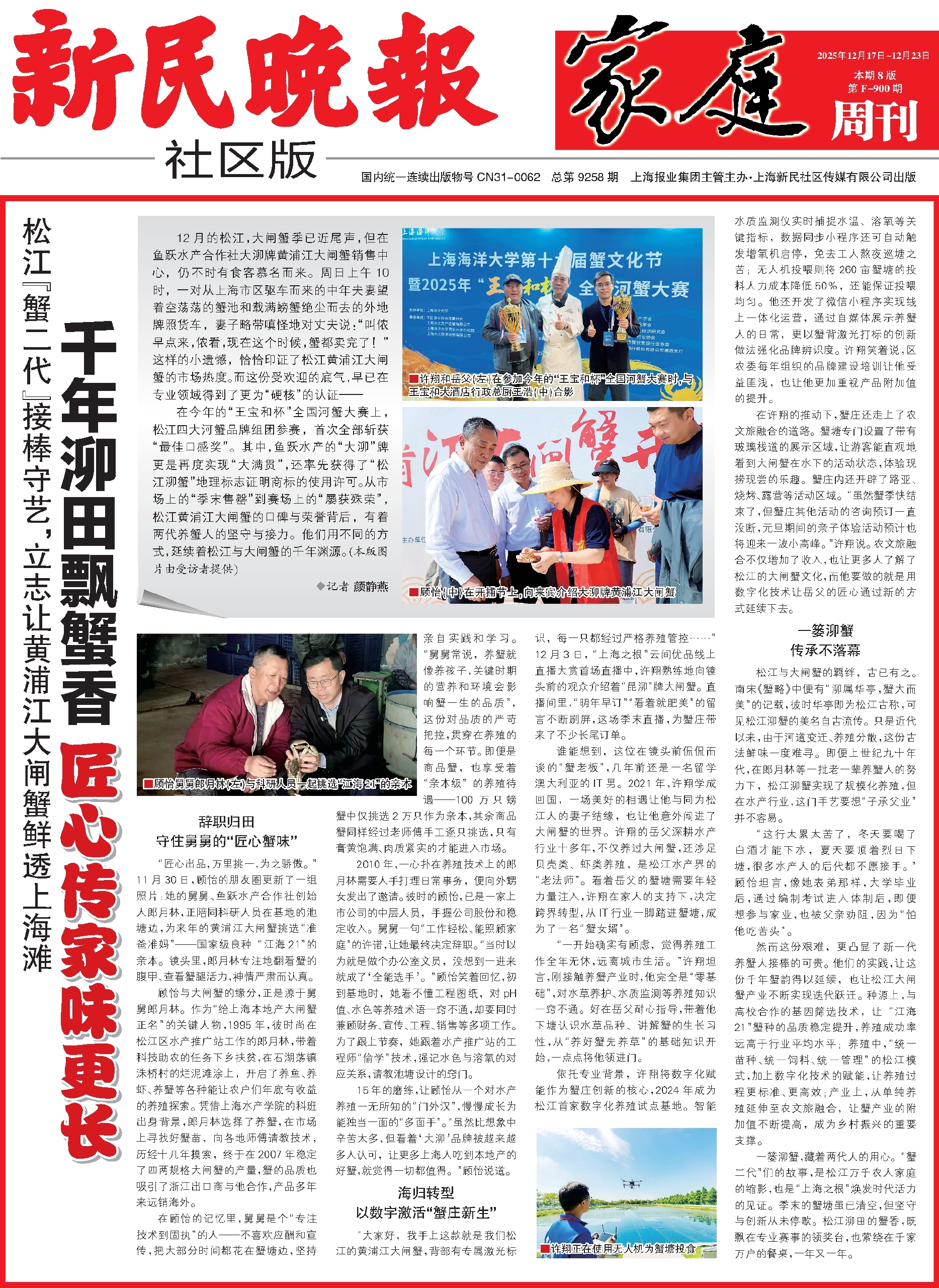 一篓泖蟹,藏着两代人的用心。“蟹二代”们的故事,是松江万千农人家庭的缩影,也是“上海之根”焕发时代活力的见证。季末的蟹塘虽已清空,但坚守与创新从未停歇。松江泖田的蟹香,既飘在专业赛事的领奖台,也萦绕在千家万户的餐桌,一年又一年。