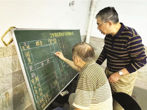 换届的当务之急就是“人选难寻”。为找到合适的候选人,居民区党组织联系换届改选小组成员,通过推荐、自荐等方式,鼓励有责任心、有时间、有专业能力的业主主动担当。候选人落定后,换届改选小组严格按照程序推进改选工作。相关公示公告不仅张贴在小区公告栏和电梯间,还通过业主群、电话通知等方式告知每一位居民。投票阶段,楼组长、志愿者和居委干部两人一组上门送票,有力保障了每一位业主的投票权。