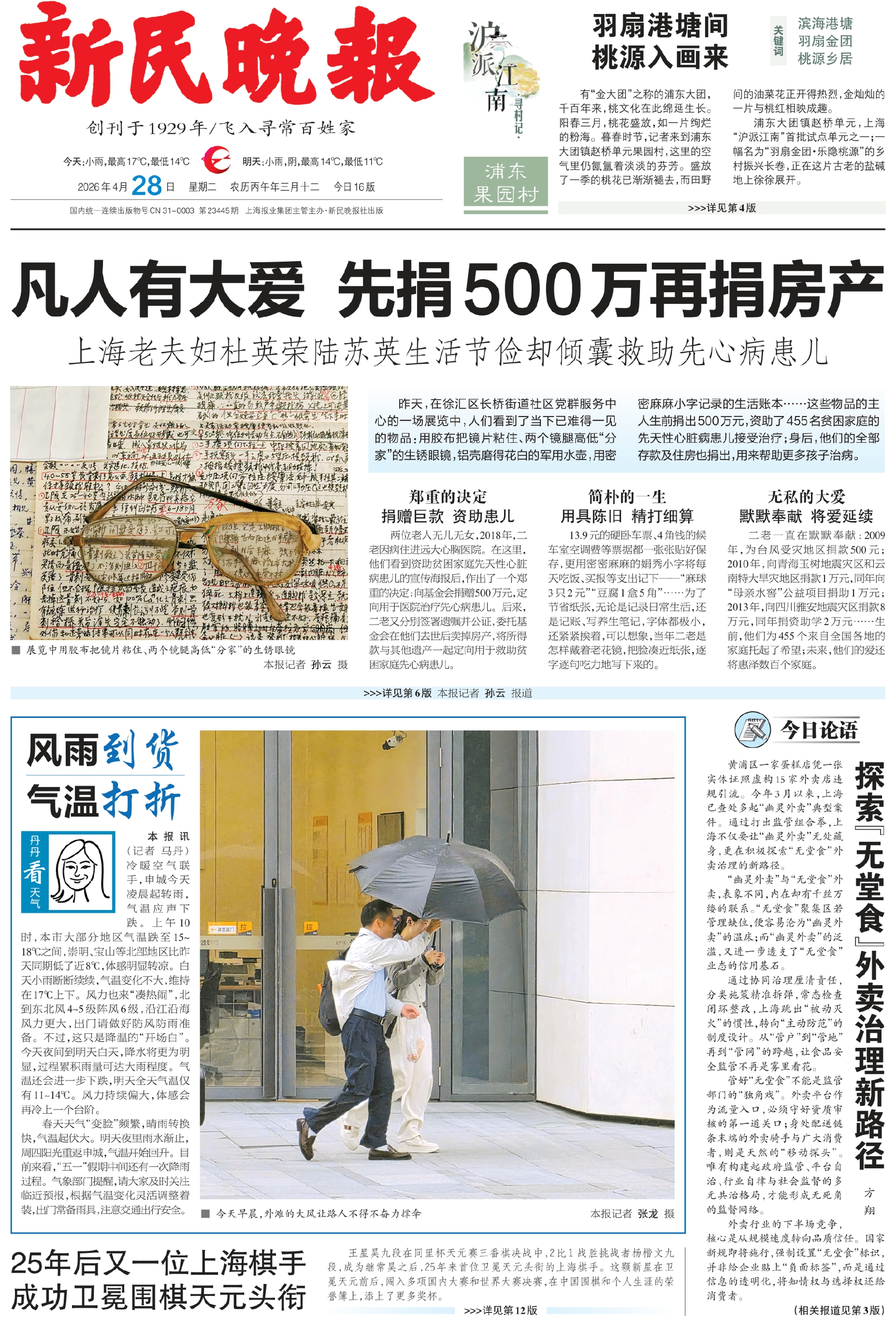 有“金大团”之称的浦东大团,千百年来,桃文化在此绵延生长。阳春三月,桃花盛放,如一片绚烂的粉海。暮春时节,记者来到浦东大团镇赵桥单元果园村,这里的空气里仍氤氲着淡淡的芬芳。盛放了一季的桃花已渐渐褪去,而田野间的油菜花正开得热烈,金灿灿的一片与桃红相映成趣。